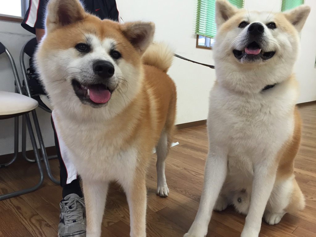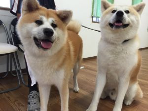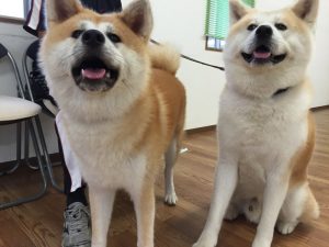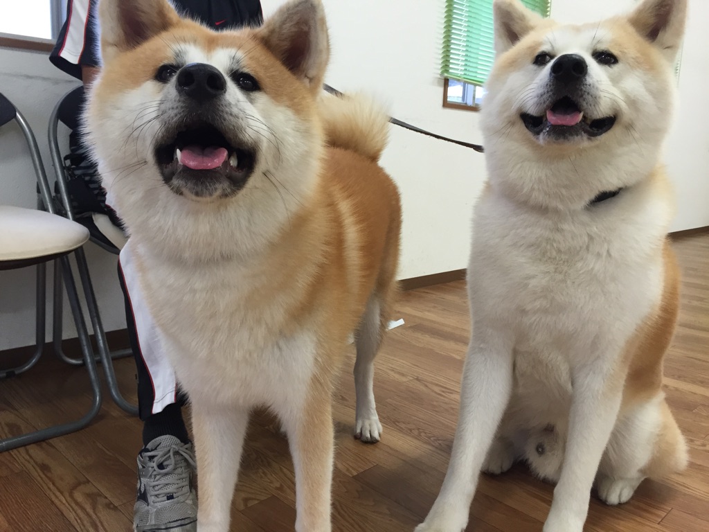 秋田犬の左:すずらんちゃん、右:桃太郎くん