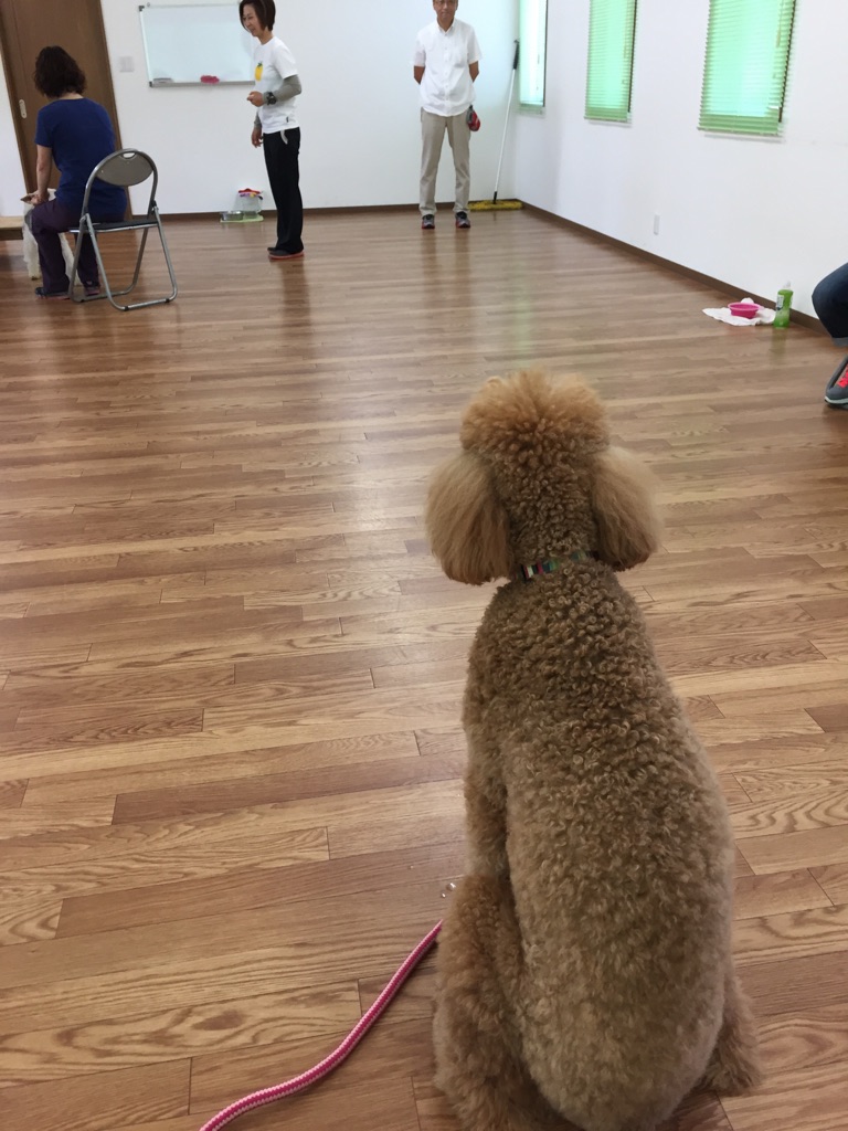 今日もこが失敗したのは、めいるパパさんの手には(おやつは)なかったのに、「こっちの手にあるよ!」と、お澄ましで座ったことです。実際の活動の場では、皆さんに1個づつ持ってもらっているので、おやつの無い手の経験が無いのです。だからパパさんの手に残っていたにおいでそう判断したんでしょうね。でも、生越先生の番の時には「お母さん、ないよ!」と教えてくれました。「なんと賢いもこでしょう。」と、親ばかになっちゃいました。